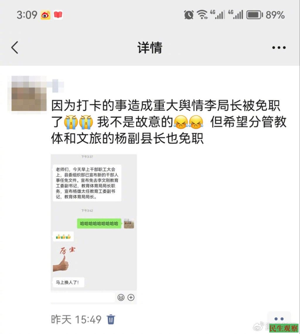 @欧阳秋叶:就是朋友圈私自透露局长免职的事并猜测原因,这个原因不当。这种情况拘留4天有点多了吧?