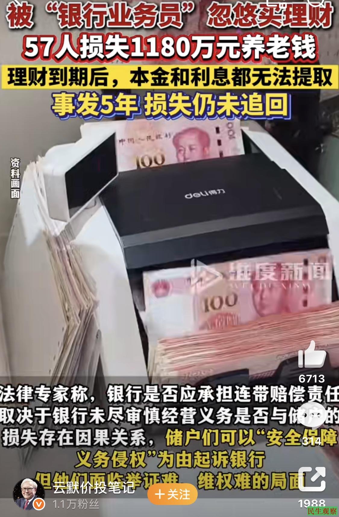 @民记老王:见过坑的,没见过在银行里光明正大坑老人养老钱的!57位长辈把“救命钱”交出去,等来的却是“假职员+高风险理财”套餐,5年追不回钱太扎心了。建议银行把“非工作人员禁推销”焊在大厅,也提醒爸妈:钱袋子要攥紧,陌生操作别轻信!