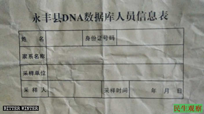 江西省村民被要求填写《DNA数据库人员信息表