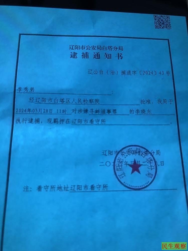 2024年3月18日去国家信访局控告被驻京组殴打致肋骨骨折一事,从信访局出来后在71路公交车站牌附近再次被驻京办绑架回辽宁辽阳,2024年3月19日被当局滥用职权非法将李晓东刑事拘留,刑事拘留10天后迅速被执行逮捕。现已拘押在辽阳看守所。
