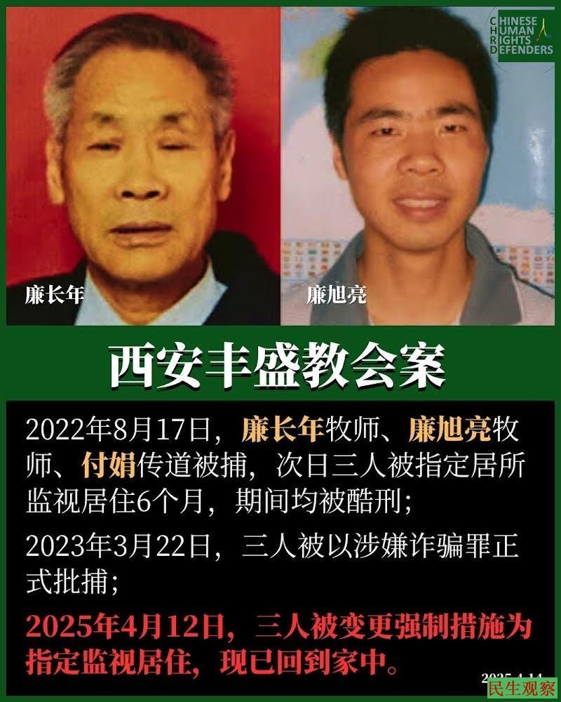 【民生观察2025年7月8日消息】本网获悉,西安丰盛教会廉长年牧师等三人被控“涉嫌诈骗”案,将于2025年7月9日开庭。